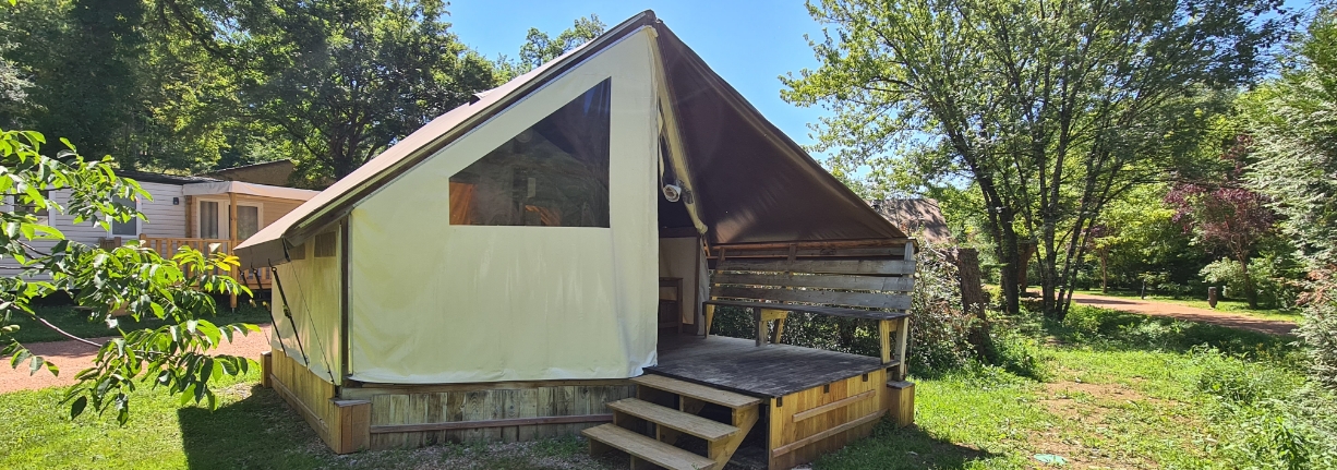 Envie d’un hébergement insolite dans le Lot qui allie charme du camping et confort d’une vraie location ? Nos lodges « Junior » en location dans le Lot vous accueillent dans une atmosphère bois & toile, au cœur d’un parc arboré près de Figeac. Dormir sous la toile, respirer la pinède, prendre le petit-déjeuner sur la terrasse… ici, l’authenticité rime avec douceur de vivre.